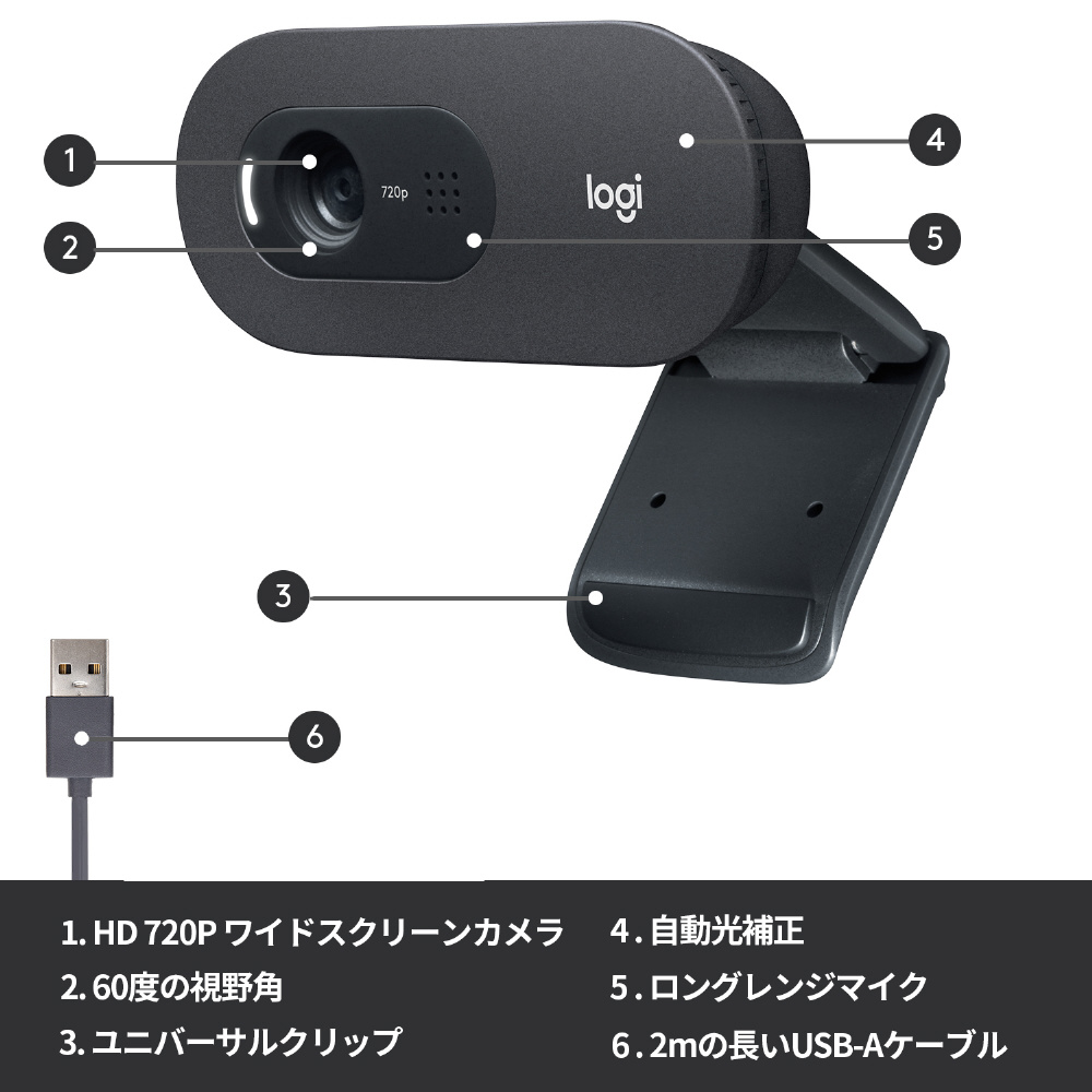 | 商品名 | ウェブカメラ マイク内蔵 HDウェブカム ブラック C505 [有線] |