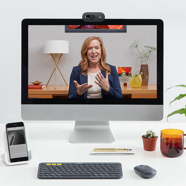 HD 720pのスムーズな映像を撮影でき、独自技術RightLightTM 2が明るさや色、彩度を自動で調整します。天井の照明によって顔に影ができる時や、少し暗い部屋にいる時も顔がクリアに映るので、ビデオ会議での容易な意思疎通に役立ちます。リモートワーク、テレワーク、在宅勤務にも最適です。