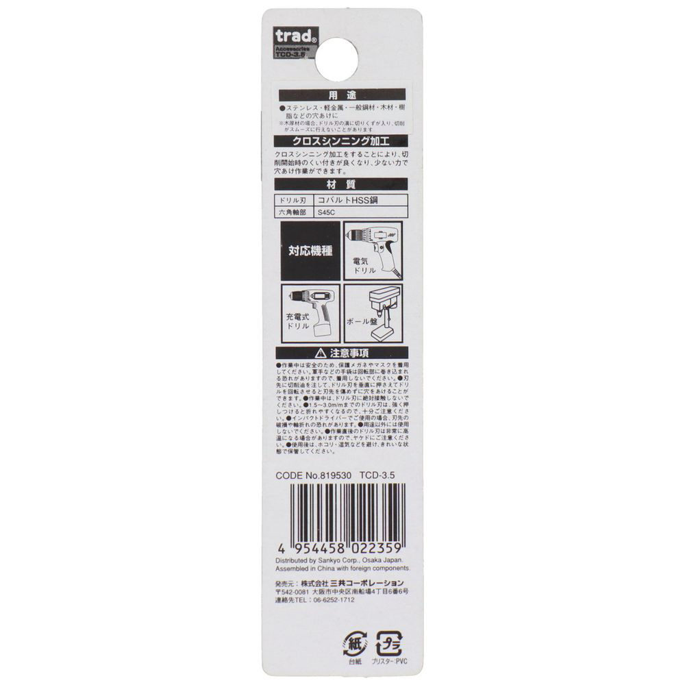 | 商品名 | TRAD 6角ショートコバルトドリル TCD-3.5#819530 |