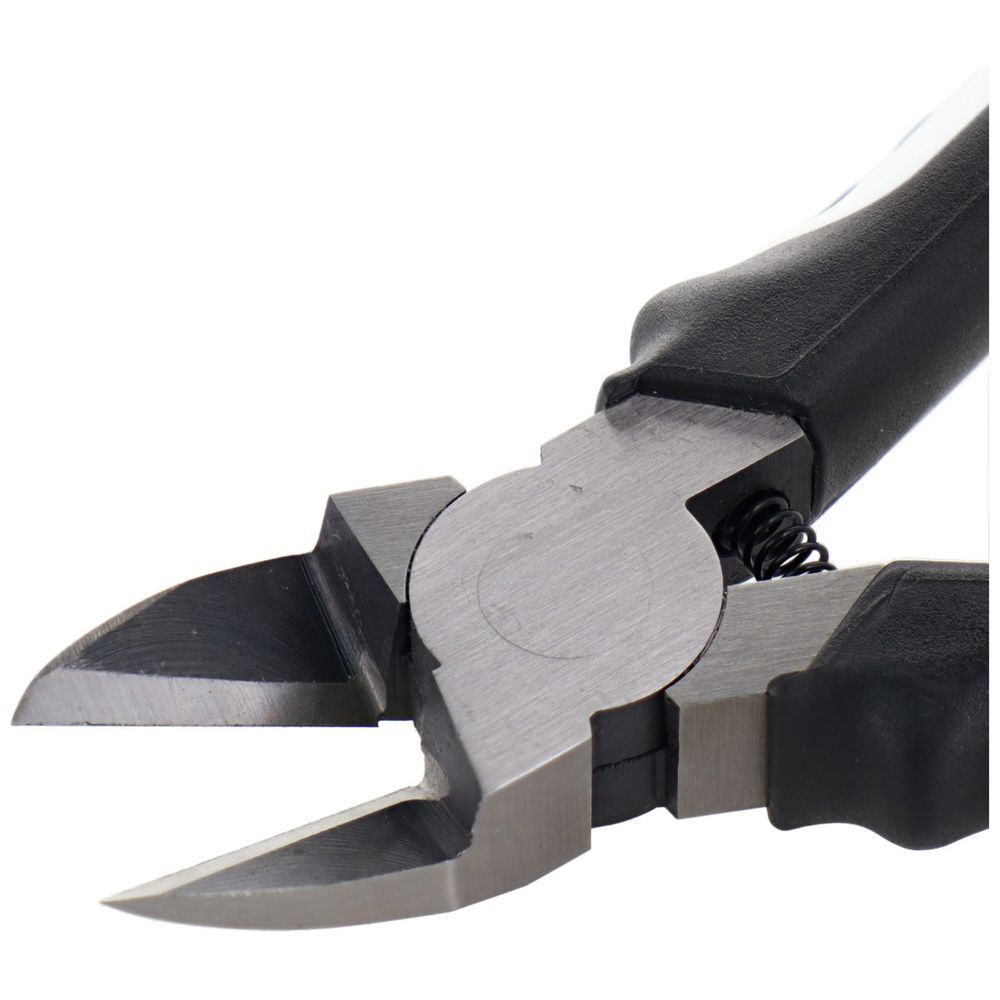 手の疲れが従来の50%軽減できる発泡エラストマグリップ仕様。ばね付きなので長時間の作業でも疲れにくい。プラスチックの成型後のゲートの切断作業、バリ取り作業やプラモデルの製作などに。熱練工による手作業での刃付け。熱処理: 本体(無酸化焼入)/刃部(高周波焼入)。