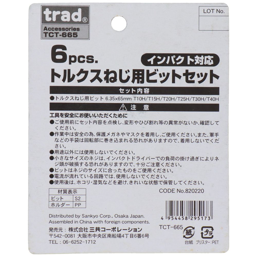 | 商品名 | TRAD 6Pトルクスビットセット TCT-665 #820220 |