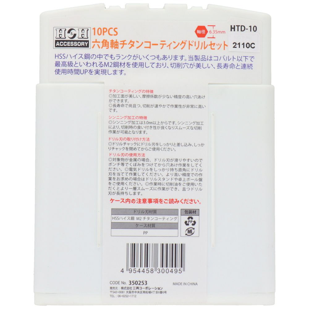 | 商品名 | H&H 6角軸チタンドリルセット HTD-10 #350253 |