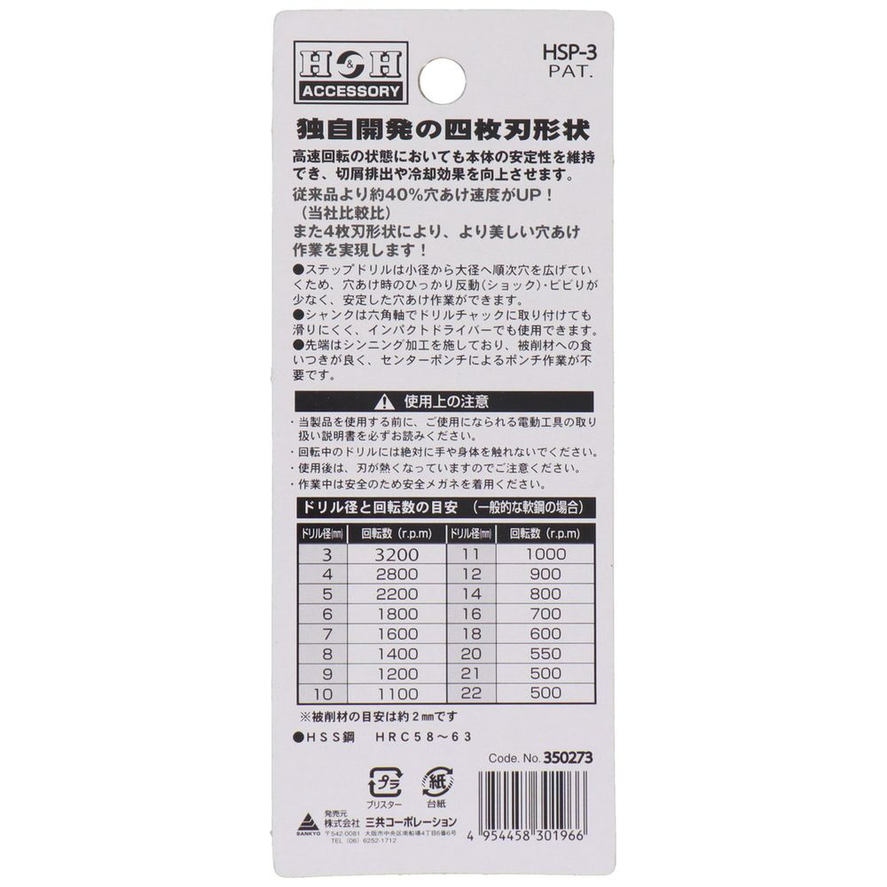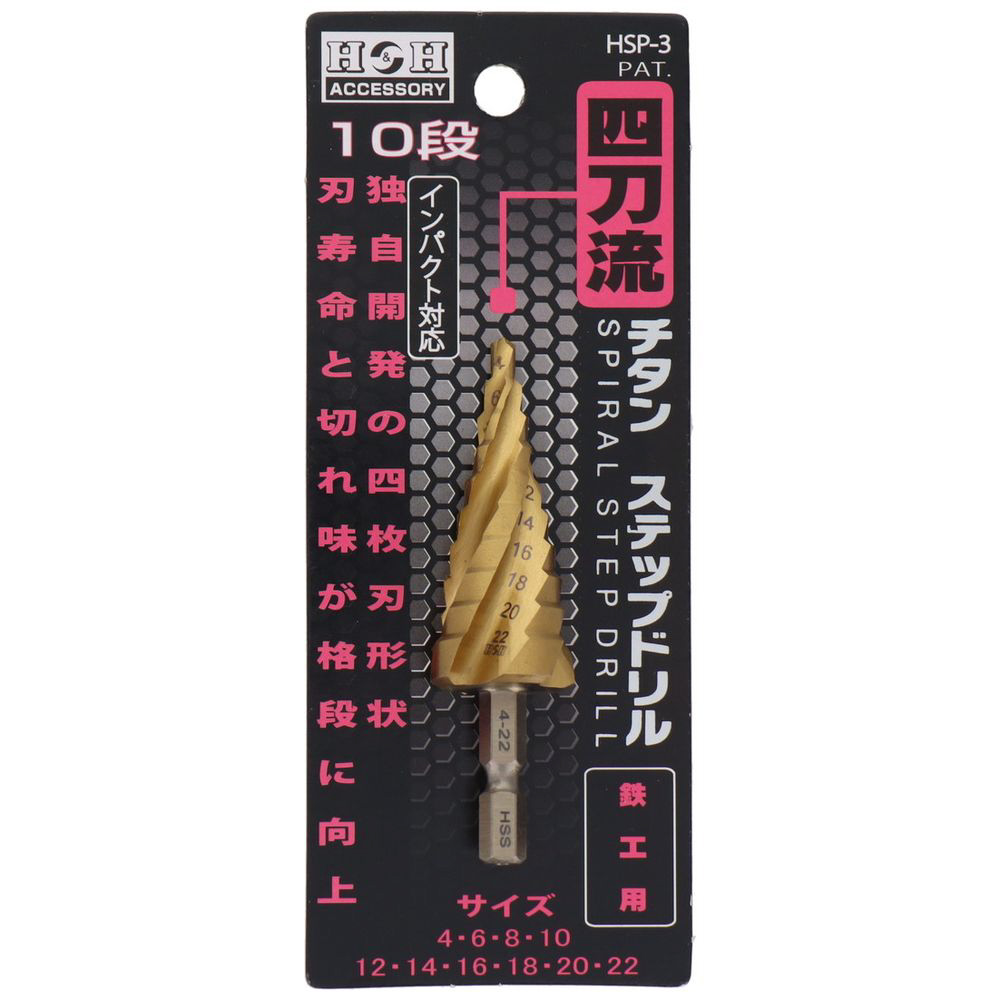 | 商品名 | H&H 4枚刃チタンステップドリル10段 HSP-3 |