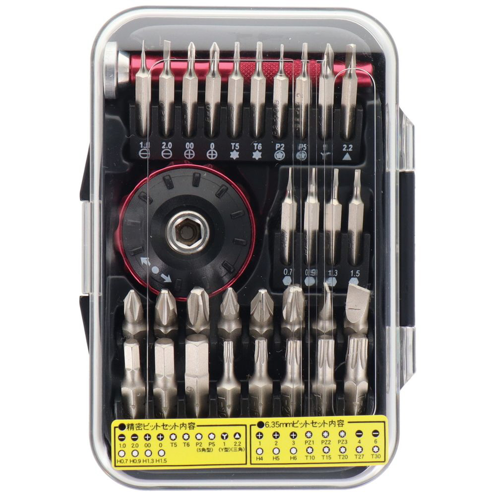 ●セット内容: 72ギア両頭スタビーラチェットハンドル・差替式精密ドライバー・精密ビット: -1.0/-2.0/+00/+0/T5/T6/P2/P5/Y型1/三角2.2/H0.7/H0.9/H1.3/H1.5・6.35mmビット: +1/+2/+3/PZ1/PZ2/PZ3/-4/-6/H4/H5/H6/T10/T15/T20/T27/T30