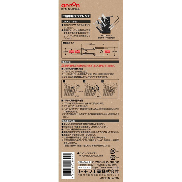 | 商品名 | 8844 二輪車用プラグレンチ (16mm・18mm・21mmに対応) 収納袋付 |