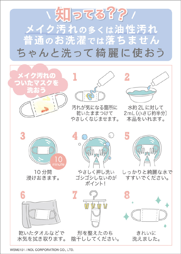 洗剤のプロがマスクの汚れに特化した配合で処方しました。ファンデやリップなどのメイク汚れもしっかり落とせる。