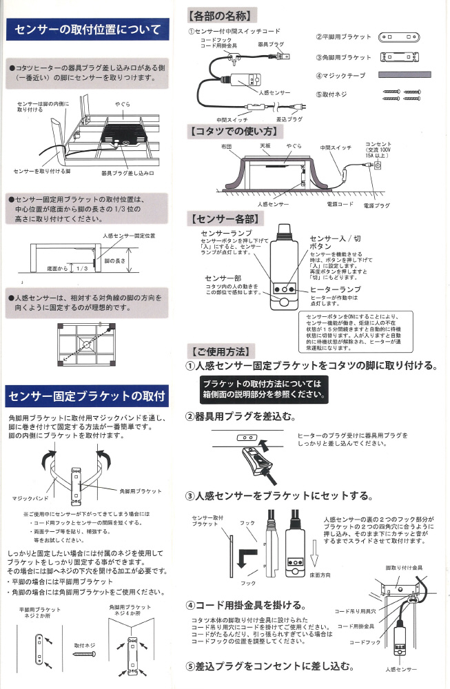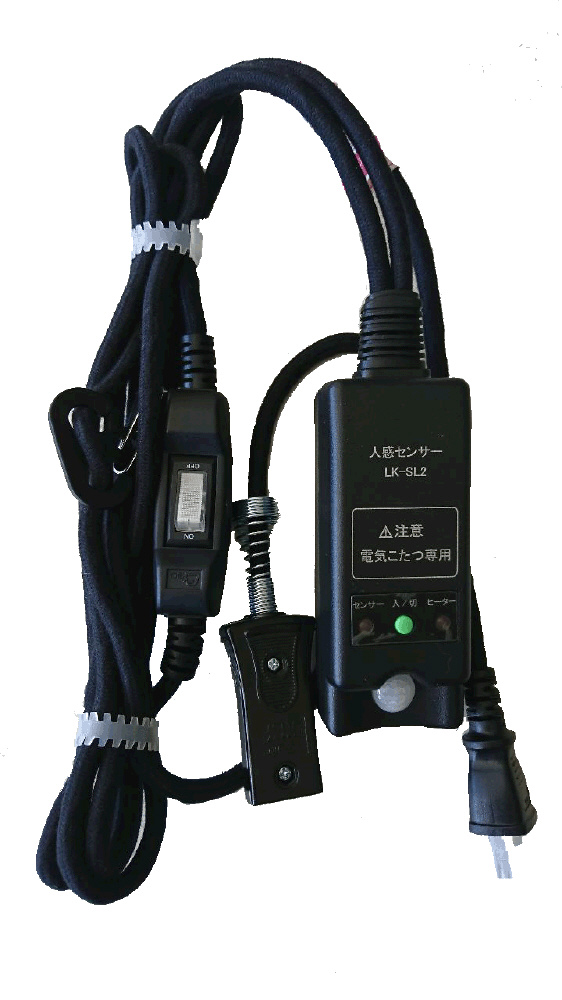 中間スイッチタイプ(2ピンタイプ)のヒーターをご利用のお客様へ、簡単に人感センサータイプをご利用頂けます。135cmまでのこたつ推奨。