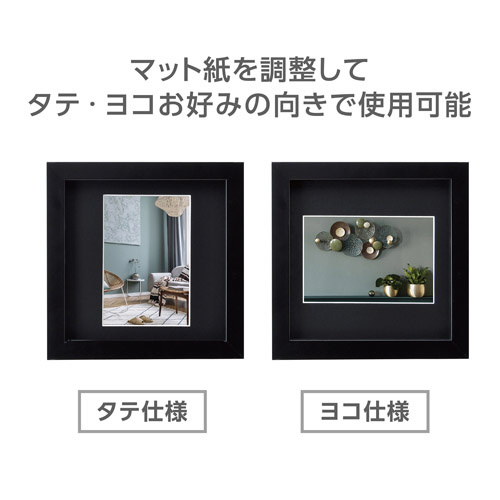 スクウェアタイプの額なので、マット紙の向きを変えればタテ・ヨコどちらの向きの写真にも対応します。