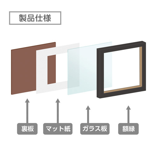 | サイズ(外寸) | ■額縁外寸法 : W367×H182×D14mm ■マット外寸法 : W160×H160×D1mm |