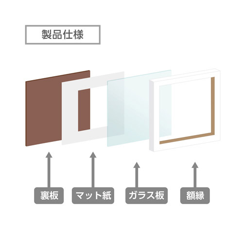| サイズ(外寸) | ■額縁外寸法 : W182×H182×D14mm ■マット外寸法 : W160×H160×D1mm |