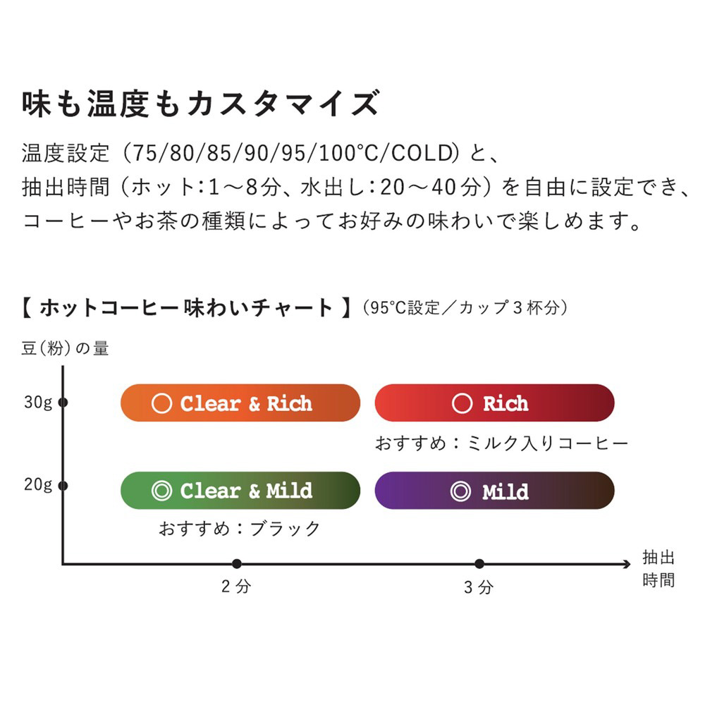1台3役。コーヒー以外に紅茶や緑茶、ケトルとして使用可。