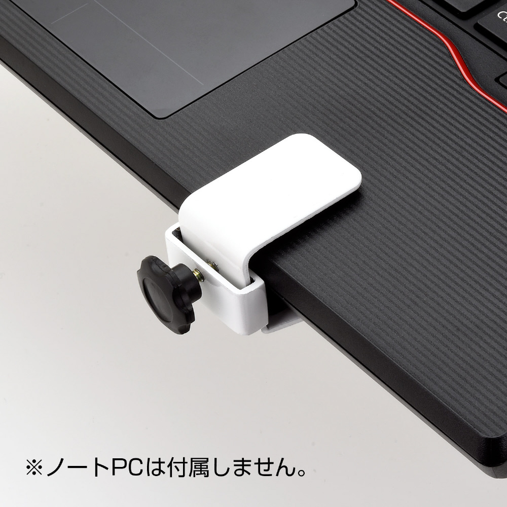 | 仕様1 | [対応機器] 15〜25mm厚のノートPC、タブレット ※固定金具を外せば25mm以上のノートPCも設置可能です。 ※機器によっては固定金具が画面やタッチパッド等の操作部分、コネクタに干渉する場合があります。 ※固定金具を外した場合、落下の危険がありますのでご注意ください。 ※取り付けることでノートPC等に微細な傷等がつく場合があります。 |