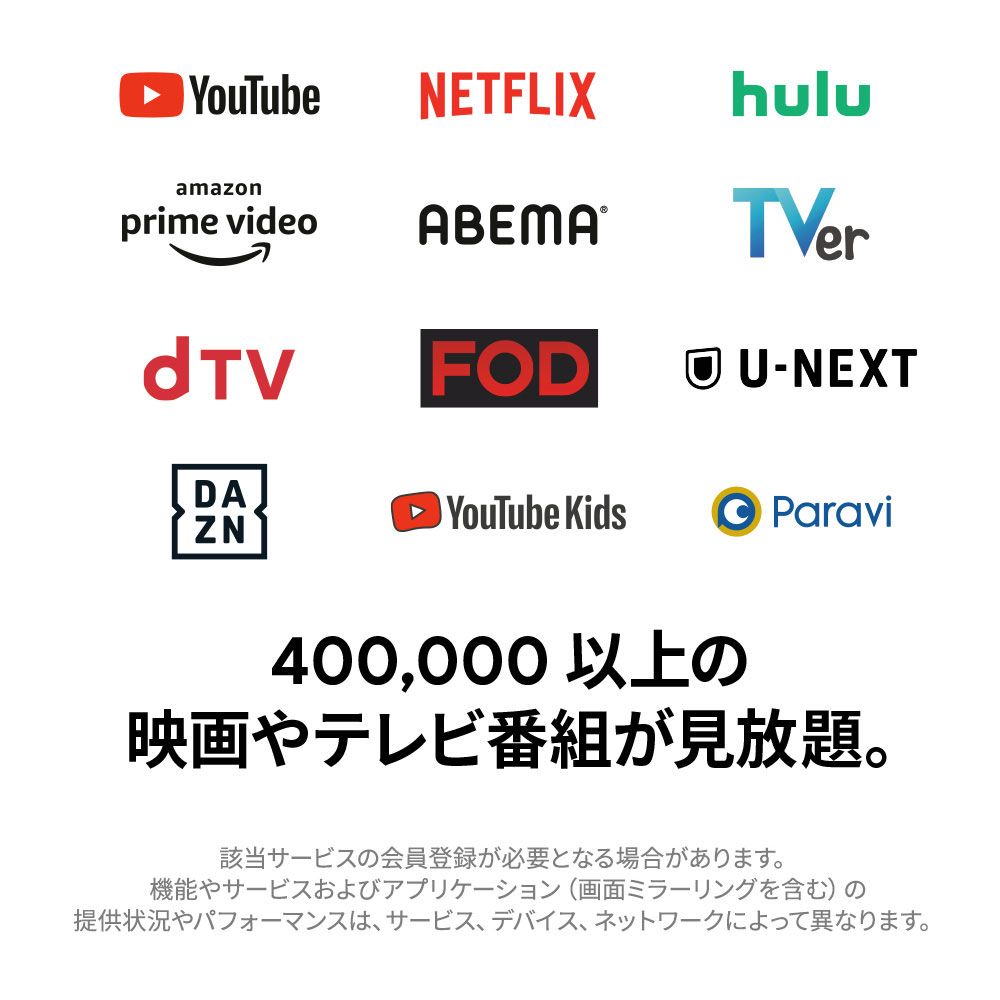 お気に入りのエンターテインメントを。Googleでもっと楽しもう。400,000 以上の映画やテレビ番組が見放題。リモコンの Googleアシスタントのボタンを押して音声検索をすることで特定の映画やドラマが見つかる。