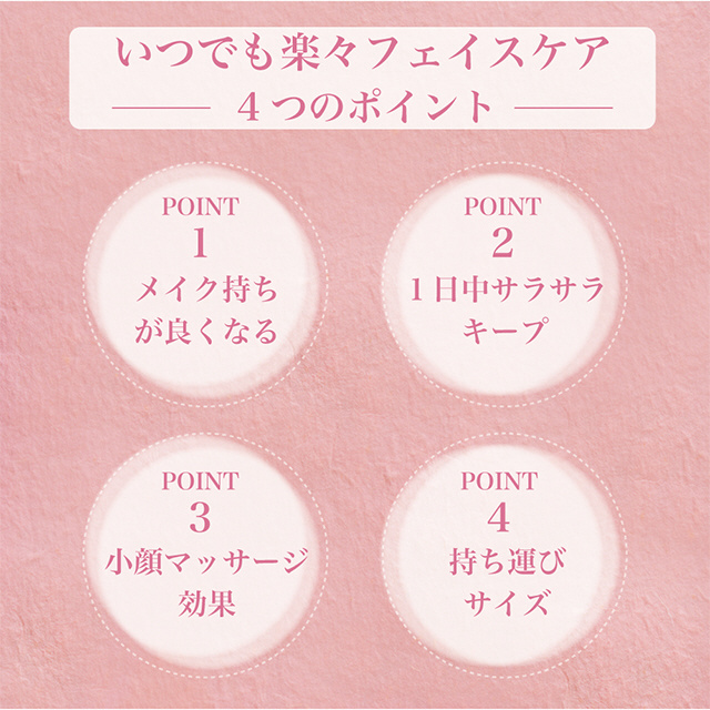 お化粧前にお使いいただくと、お肌がさらさらに仕上がり、メイクのキープ力を高めます。
