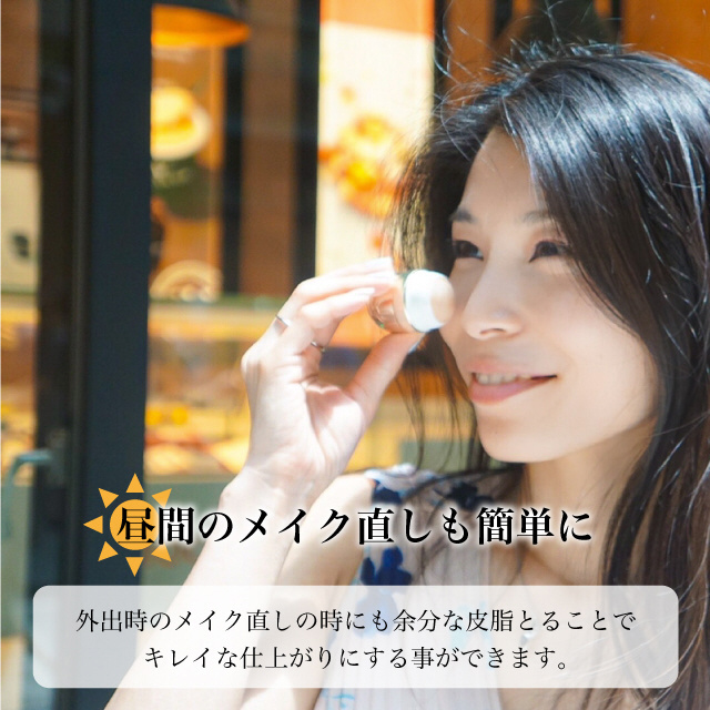 お肌に皮脂が浮いてくる午後!メイクの上からボールを転がすだけで余分な皮脂・テカリを取り除きます。