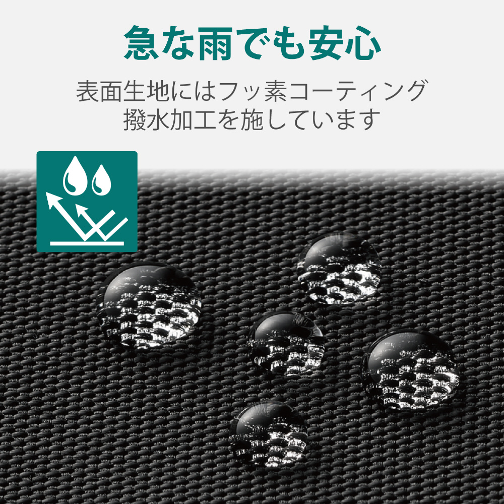 ■表面生地にはフッ素コーティング撥水加工を施しています。※内部への水の浸入を完全に防ぐものではありません。