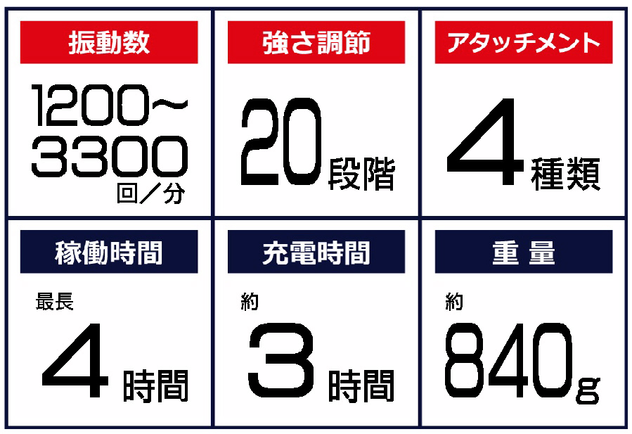●一回の充電で最大4時間!ワイヤレスで簡単に長時間マッサージできます。