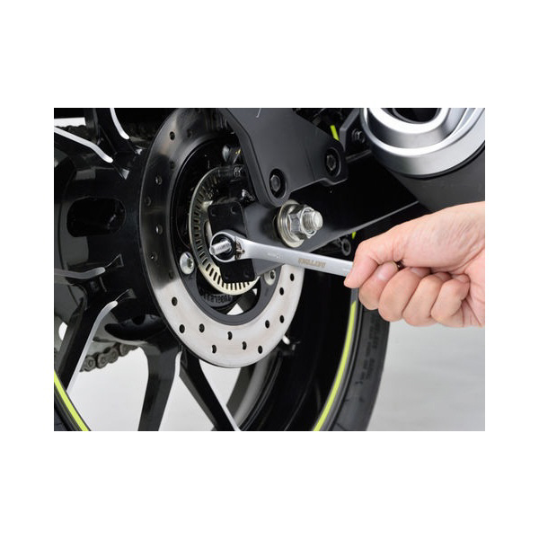切り替えレバーで正転・逆転の切り替えができるラチェット式メガネレンチ。