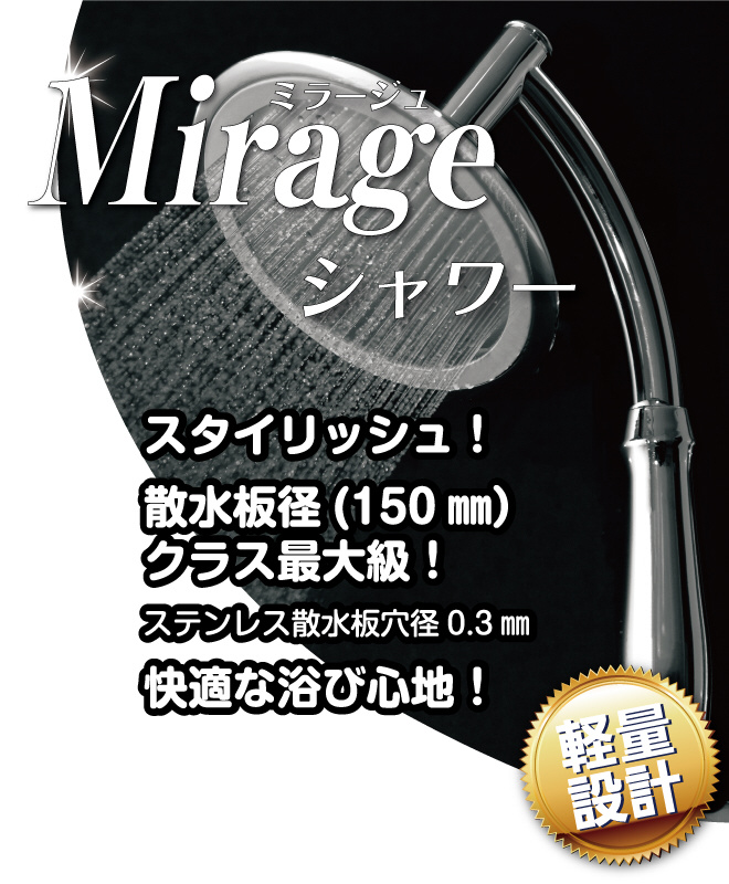 散水板径150mmクラス最大級!散水板穴径0.3mm、快適な浴び心地を約束します。軽量設計なので、大きさのわりに大変扱いやすくお子様でも安心してご使用頂けます。