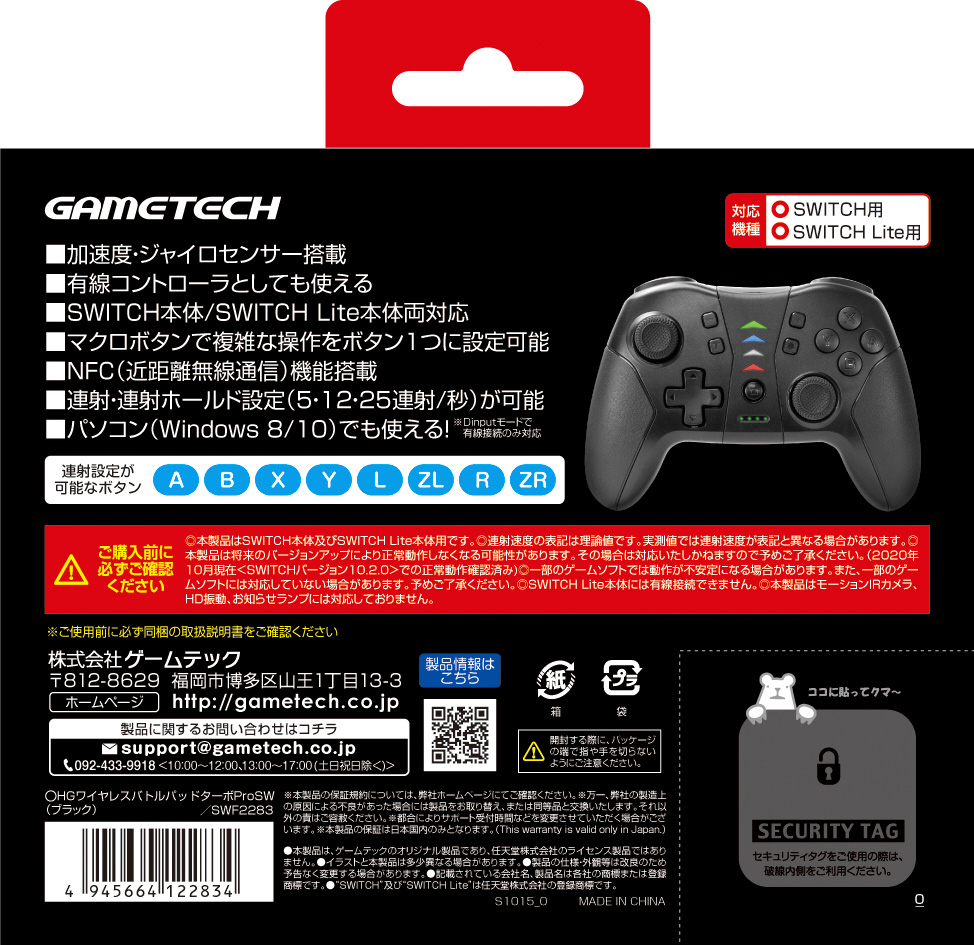コントローラ背面に4つのマクロボタンを搭載した、SWITCH用ワイヤレスコントローラです。