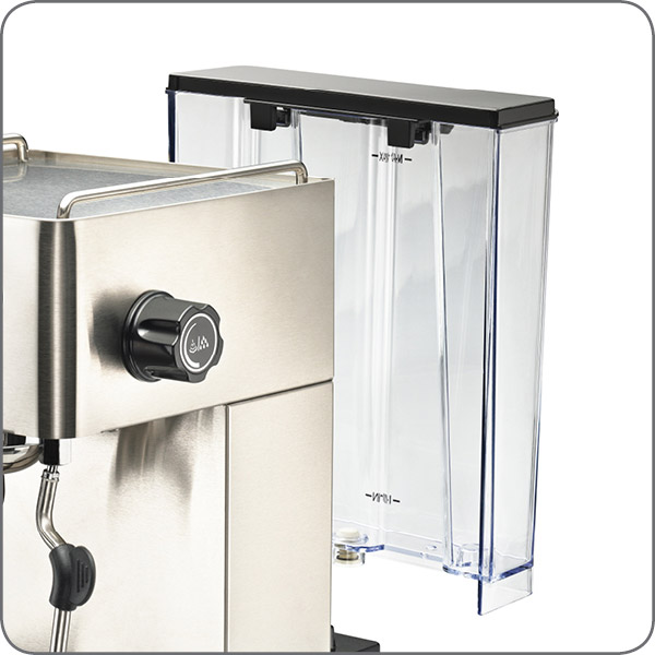 PIDシステムによる水温管理で安定した抽出を実現し、スチーム機能、お湯機能付きで様々な飲み物に対応します。