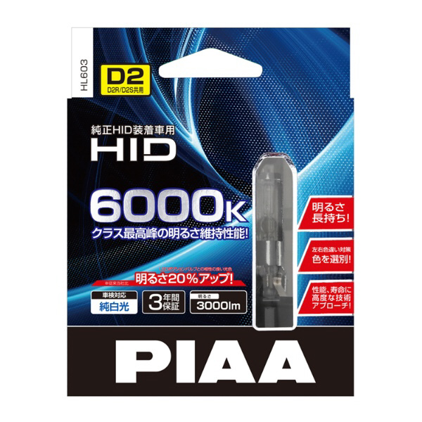 HL603 ヘッドライト用 HIDバルブ(純正交換タイプ) 6000K 12V24V車共用 3000lm D2R/D2S共用 車検対応 2個入