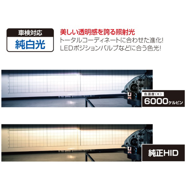 ●一般的にな純正HID 4000K前後に対し、純白色6000Kを実現!車検対応品です。