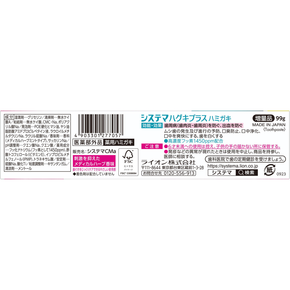 | 商品名 | システマ ハグキプラス ハミガキ 増量品 99g |