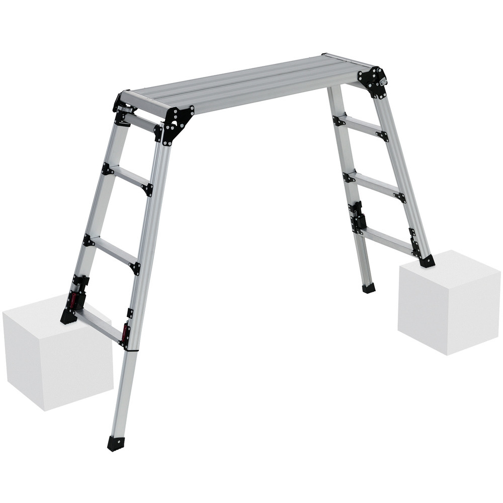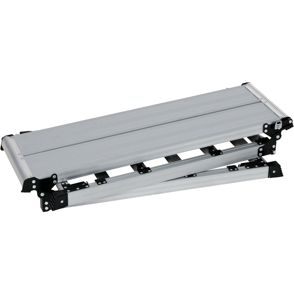 立ったまま伸縮できる上部操作式4脚アジャスト式足場台です。