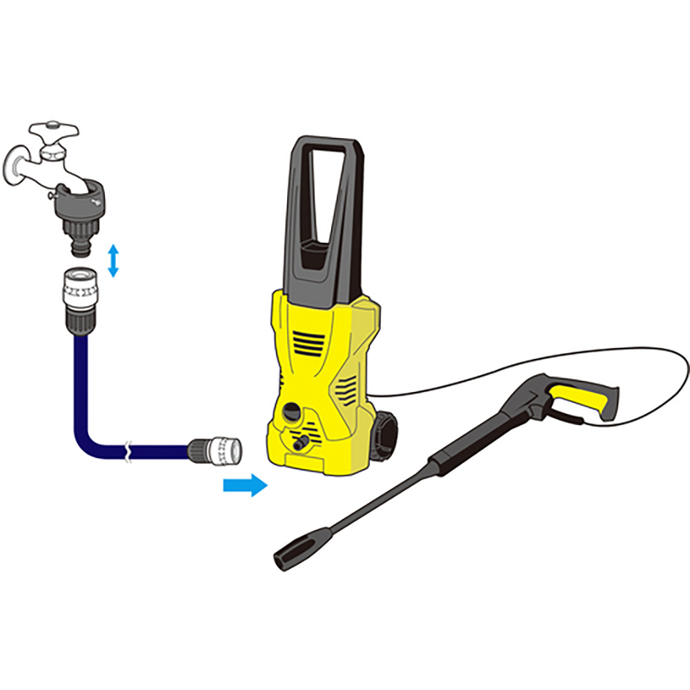 蛇口と高圧洗浄機をワンタッチで接続できるホースです。