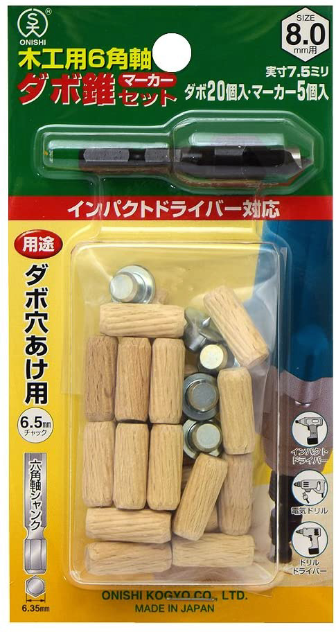 セット内容:六角軸ダボ錐8mm用+木ダボ20個+マーカー5個