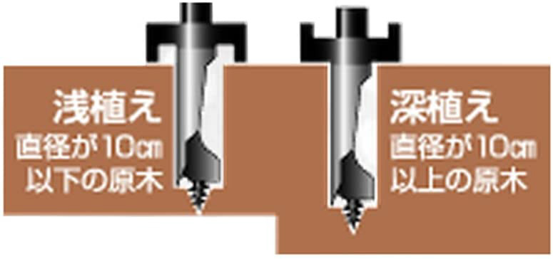 しいたけ栽培用。穴あけ深さに達するとストッパーは回転せずにドリルの先進を止め、原木を傷めません。ストッパー取付け位置変更で6種類の深さ設定が可能です。10,000回転まで使用可能