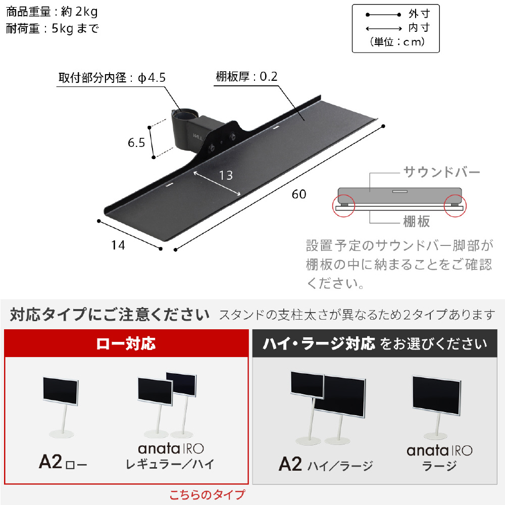 WALL テレビスタンド A2ロータイプ対応サウンドバー棚板