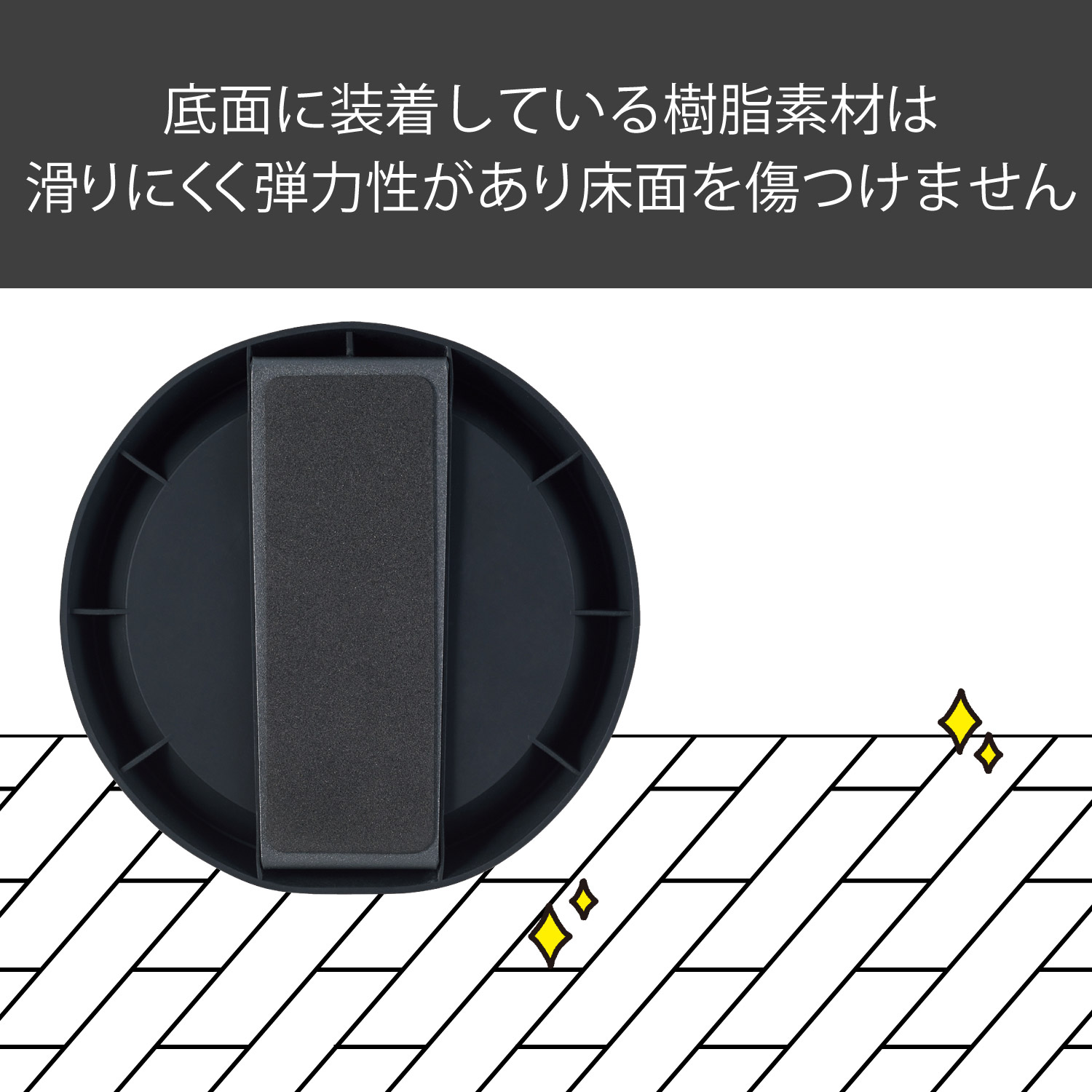 ■底面に装着している樹脂素材は、滑りにくく弾力性があり床面を傷つけません。