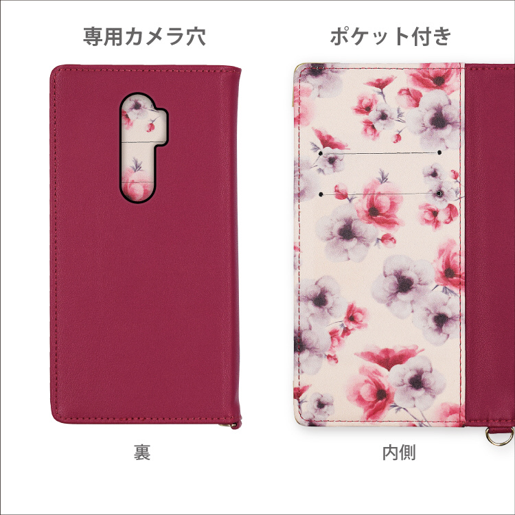 OPPO A5 2020対応 手帳型ケース エレガンテ フラワー ラズベリー BL-A52003RB