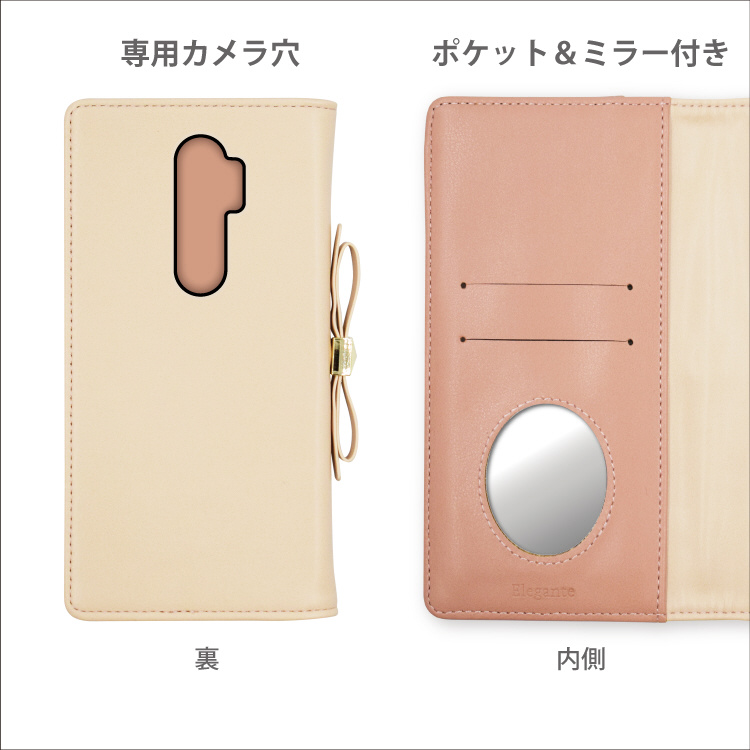 OPPO A5 2020対応 手帳型ケース エレガンテ リボン ピンクベージュ RU-A52001PB