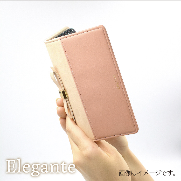 トレンドのくすみカラーにリボンを添えた手帳型スマホケースです。