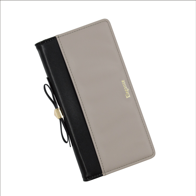 トレンドのくすみカラーにリボンを添えた手帳型スマホケースです。