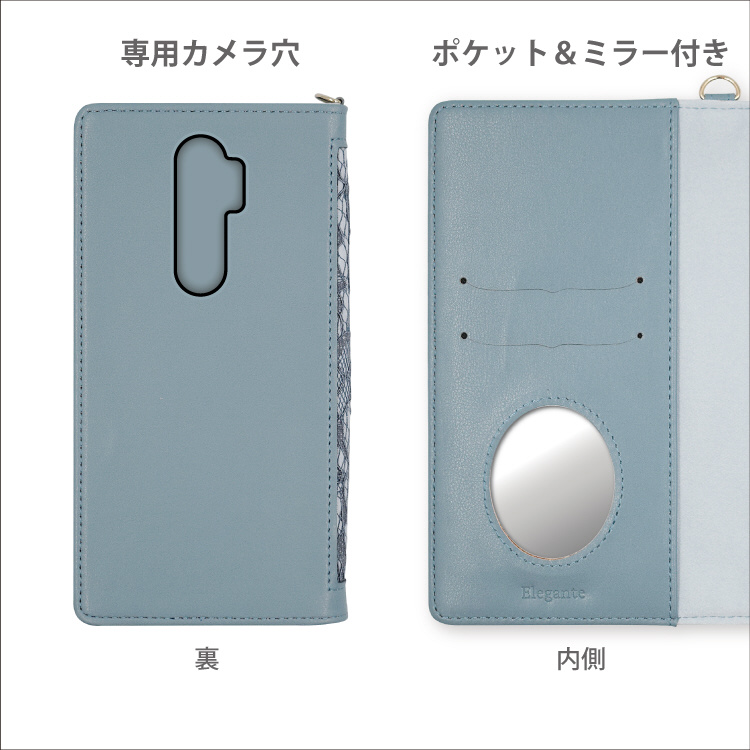 | 商品名 | OPPO A5 2020対応 手帳型ケース エレガンテ レース スモーキーブルー LA-A52001SB |
