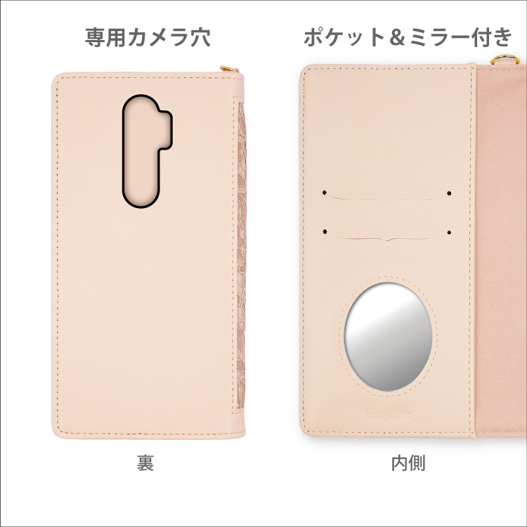 OPPO A5 2020対応 手帳型ケース エレガンテ レース ピンクベージュ LA-A52003PB
