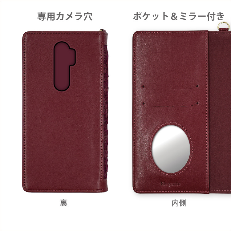 OPPO A5 2020対応 手帳型ケース エレガンテ レース ワイン LA-A52005WN