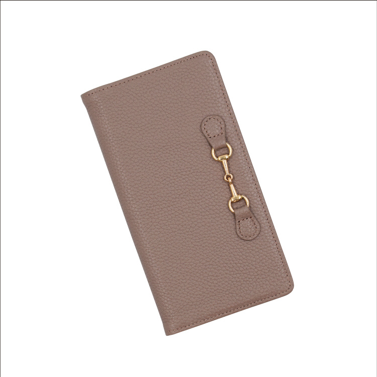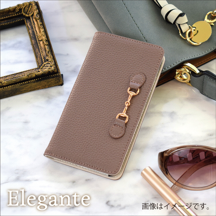 シュリンクレザーで仕立てた高級感と上品さがあるワンランク上のスマホケースです。ゴールドパーツがさり気なくアクセントを添えます。