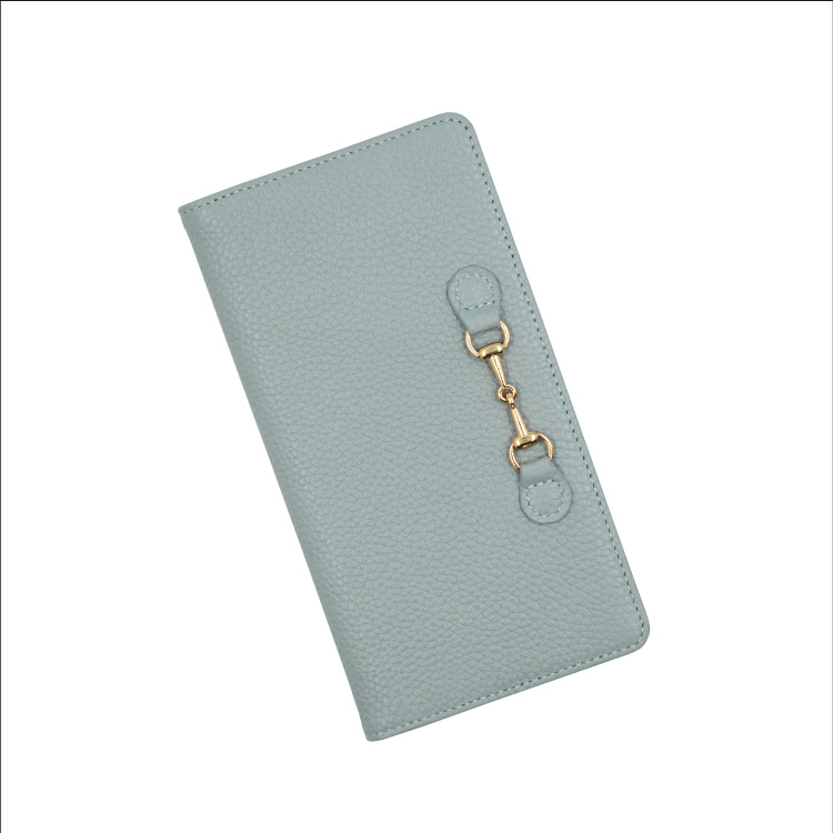 シュリンクレザーで仕立てた高級感と上品さがあるワンランク上のスマホケースです。ゴールドパーツがさり気なくアクセントを添えます。
