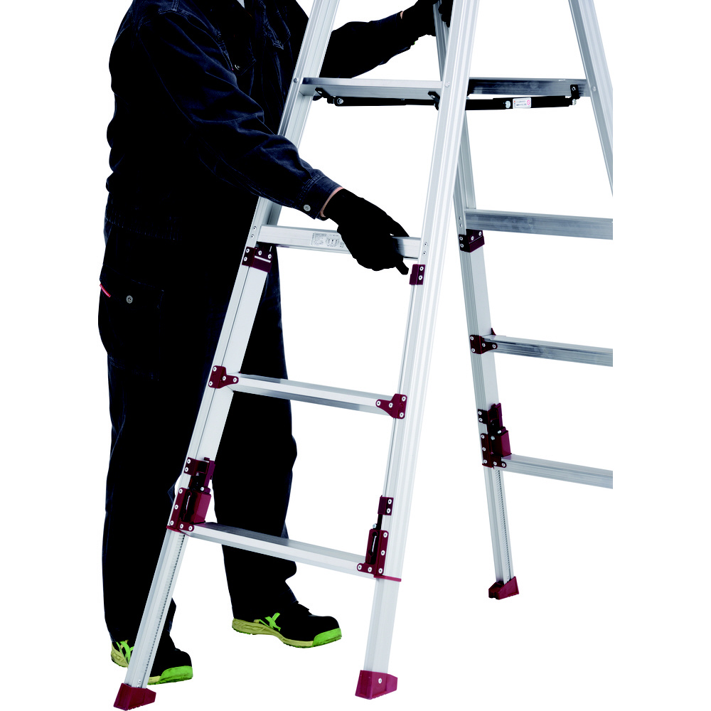 立ったまま伸縮でき、ワンタッチで折りたたみができる上部操作式の専用脚立です。