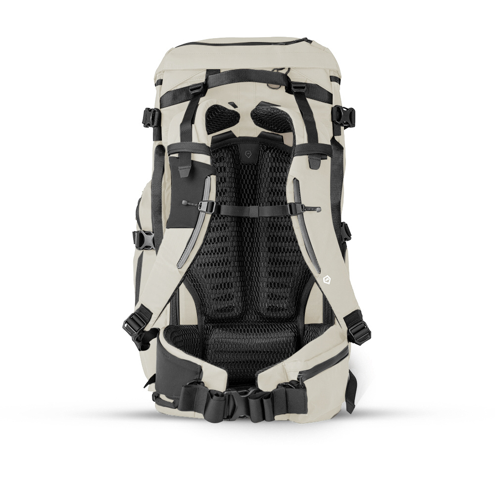 M/L、S/Mの2サイズより、腰骨から頚椎までの長さ、胸囲、腰回りに合わせたサイズをお選びいただけます。両サイズの違いは外寸だけで、どちらもたくさんの荷物に加え、カメラキューブ(別売)をセッティングすることで機材も収納できる、大容量の50Lです。