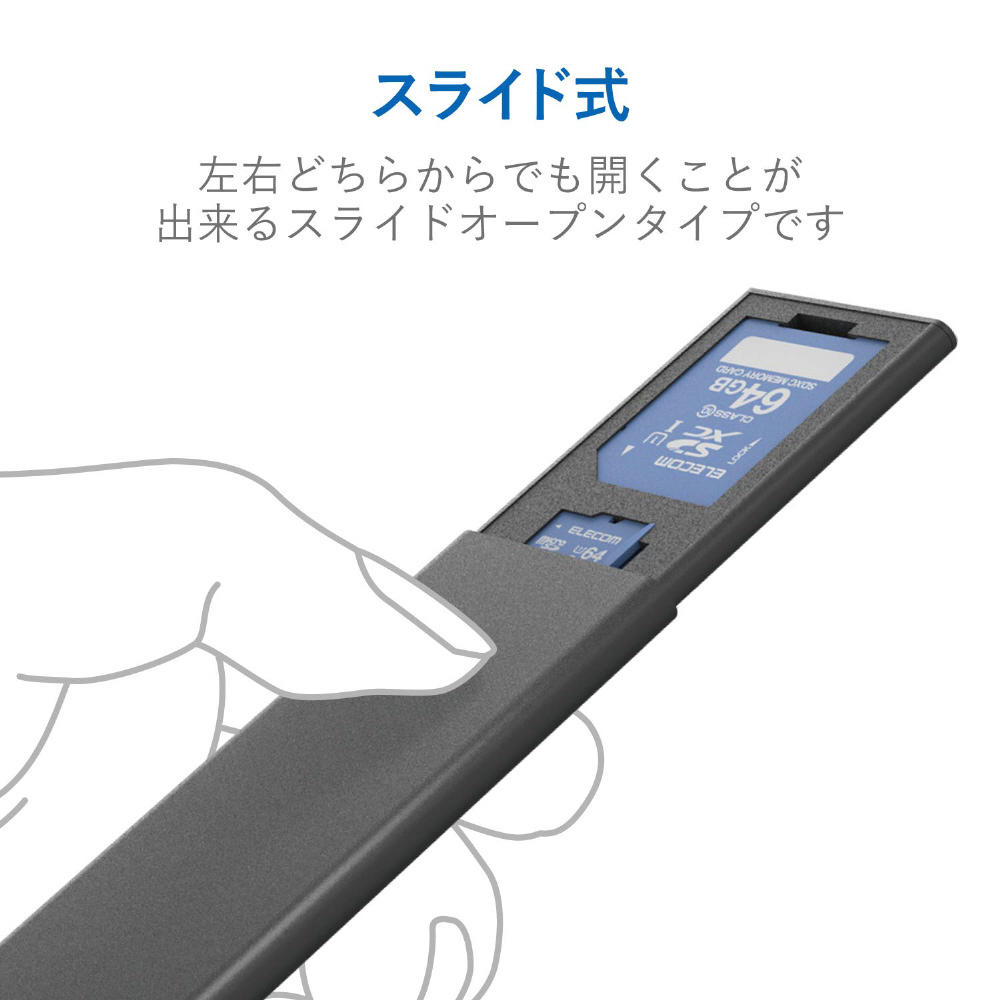 メモリカードケース SD+microSD アルミタイプ スライドオープン式 Mサイズ CMC-SDCAL01BK