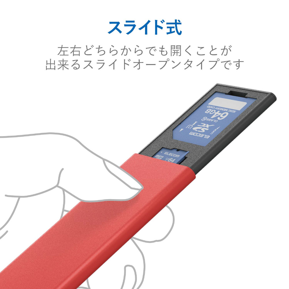 メモリカードケース SD+microSD アルミタイプ スライドオープン式 Mサイズ CMC-SDCAL01RD