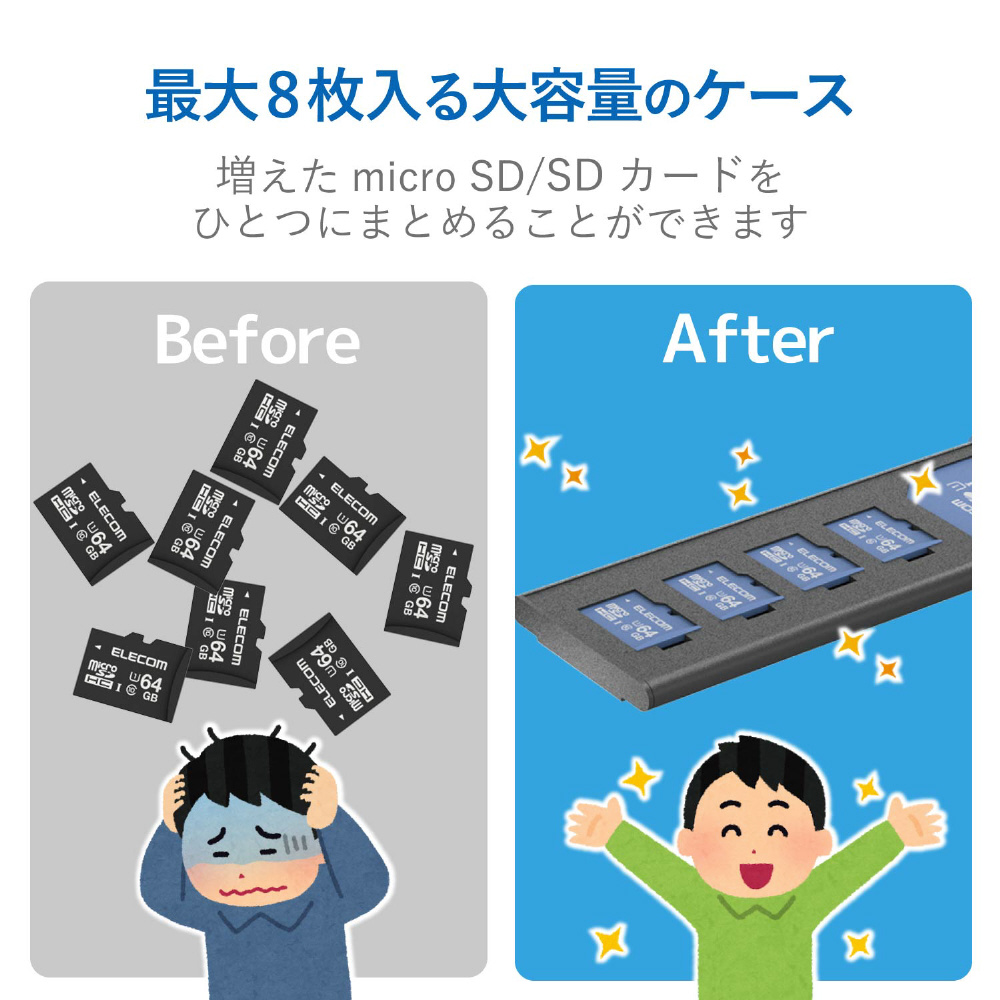 ■収納内容が選べるカードトレイが2種類付属しています。(microSDカード×8枚用/SDカード×1枚+microSDカード×4枚用)