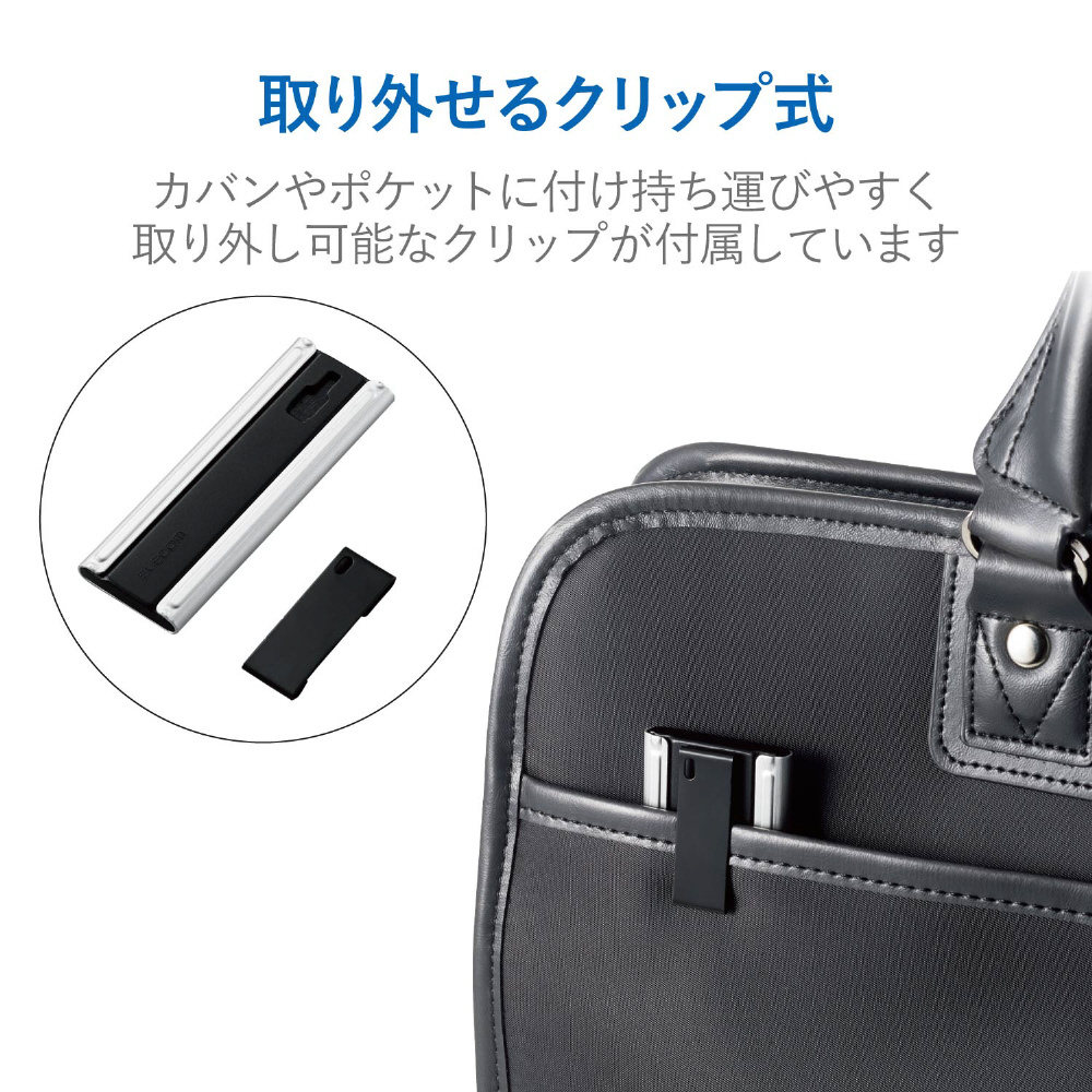 ■カバンやポケットでも見つけやすく、紛失しにくいクリップが付属しています。また最薄にしたい場合はクリップを取り外すことも可能です。