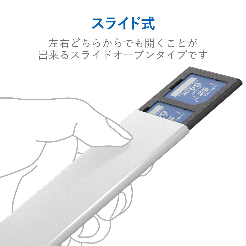 メモリカードケース SD+microSD アルミタイプ スライドオープン式 Lサイズ CMC-SDCAL02SV